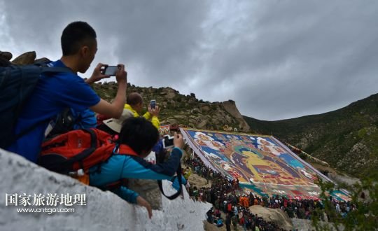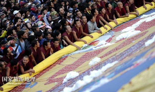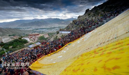 國家旅游地理 西藏拉薩8月6日訊 8月6日,拉薩哲蚌寺舉行展佛儀式。當日,以西藏最大的格魯派寺廟哲蚌寺展佛為開端的雪頓節(jié)在拉薩拉開序幕。每年藏歷六月底七月初是西藏傳統的節(jié)日“雪頓節(jié)”。在藏語中,“雪”是酸奶子的意思,“頓”是“吃”“宴”的意思,“雪頓節(jié)”按藏語解釋就是吃酸奶子的節(jié)日,因此又叫“酸奶節(jié)”。因為“雪頓節(jié)”期間有隆重熱烈的藏戲演出和規(guī)模盛大的曬佛儀式,所以有人也稱之為“藏戲節(jié)”“曬佛節(jié)”。 /新華社記者 普布扎西攝