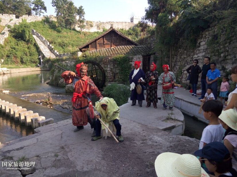 這是福泉民間老藝人在表演福泉陽(yáng)戲《二郎鎖孽龍》。福泉陽(yáng)戲,所謂陽(yáng)戲是指唱給活著的人聽(tīng)的;也有陰戲,便是唱給死去的人聽(tīng)的。陽(yáng)戲主要有兩種功能,一種是娛樂(lè),另一種便是還愿納吉,意思是之前向天神祈求的事情實(shí)現(xiàn)了,于是便唱起陽(yáng)戲向天神還愿,同時(shí)也向天神祈求吉祥。福泉老藝人在表演陽(yáng)戲的時(shí)候,雖然言語(yǔ)不通,但依然可以感受到陽(yáng)戲所具有的獨(dú)特魅力,以及陽(yáng)戲中所蘊(yùn)含的民俗文化。