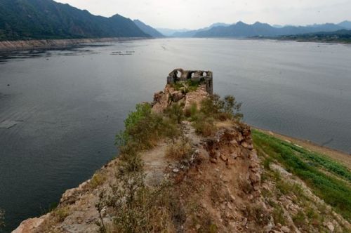 2015年7月16日,河北潘家口水庫旁的喜峰口長城墻體塌方嚴重。新華社記者牟宇 攝